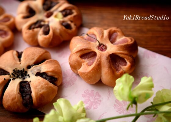 3月に入りました~💕今朝は、たった今花のパン(形いろいろ。桜あんバージョンと私が作ったあんこ+クリームチーズバージョン)そして、家にあるもので作ったちらし寿司完成~